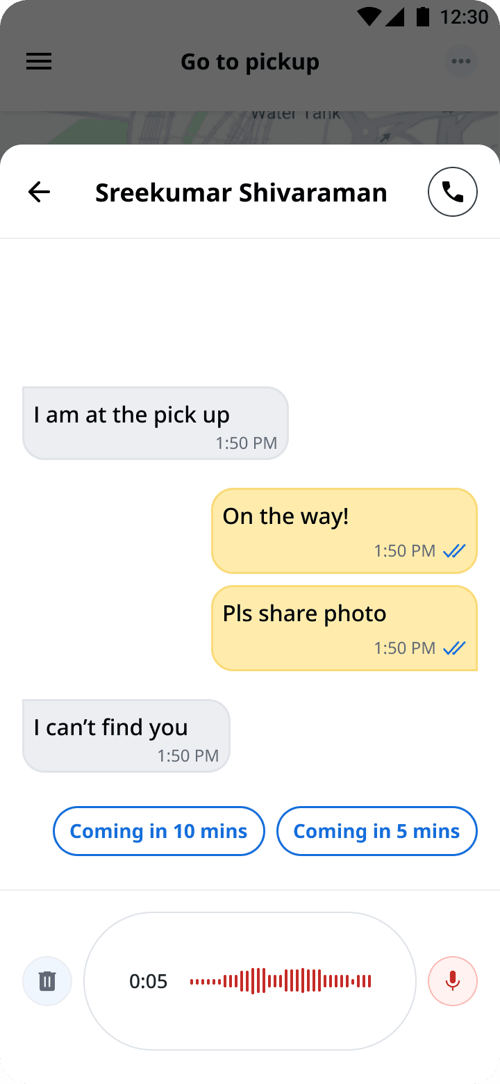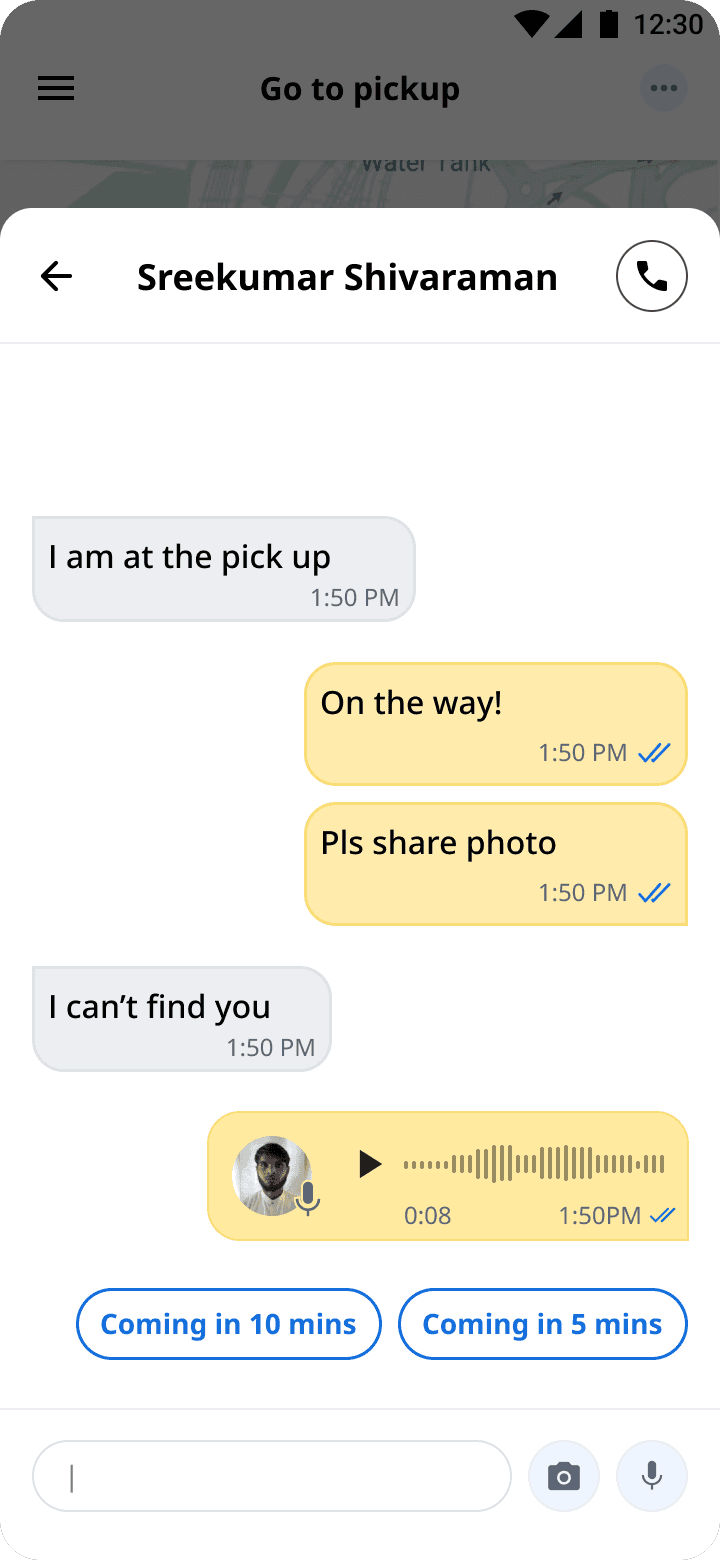 Instead of treating this as a minor feature addition, I saw it as an opportunity to redefine the driver experience — both visually and functionally. I proposed creating a Visual Pickup Experience, a holistic redesign that blended real-world imagery, contextual cues, and conversational communication.